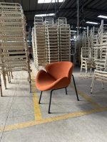 Asiento y respaldo de madera multilaminado revestido en goma espuma de alta densidad y tapizado a elección, estructura de caño pintado con pintura tipo epoxi horneada.