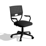 Silla giratoria con brazos, regulación neumática, tapizado en género y colores varios, goma espuma de alta densidad, respaldo en PVC.